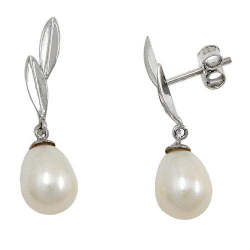 Ohrstecker Ohrring 22x6mm Hänger Süßwasserzuchtperle 9Kt Weißgold