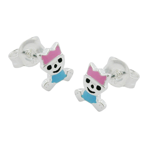 Ohrstecker Ohrring 7x6mm kleiner König pink-hellblau lackiert Silber 925
