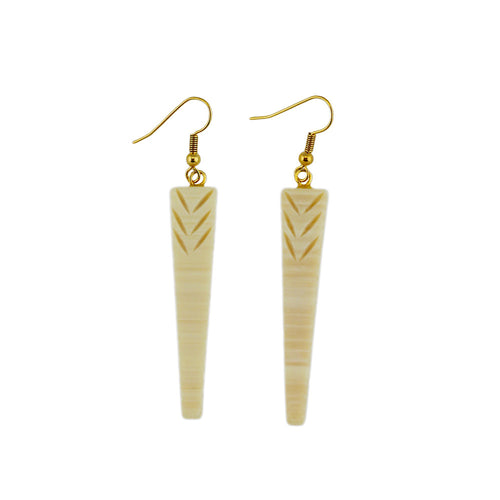 Ohrring Ohrhaken 70x10mm Keil mit Kerben beige-natur Kunststoff