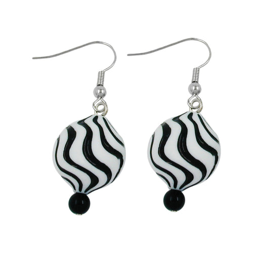 Ohrhaken Ohrhänger Ohrringe 42x17mm Wellenperle Kunststoff schwarz-weiß