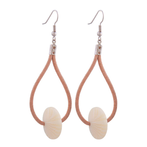 Ohrhaken Ohrhänger Ohrringe 80mm Lederriemen natur mit Kunststoffperle Rad creméfarben