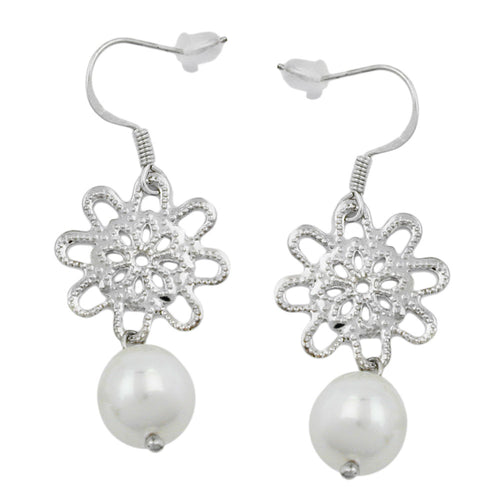 Ohrhaken Ohrhänger Ohrringe 45mm Blume mit Glasperle weißwachs