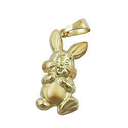 Mein Goldhase! Vom Kosewort zum Schmuckstück - dieser putzige 20x11mm große Anhänger Hase aus 585er Gold (14 Karat), gearbeitet in hochwertiger Juwelierqualität, macht es wahr. Der lachende Hase sorgt garantiert für gute Laune, nicht nur als Osterhase! Der Hasen-Anhänger ist glänzend und an Ohren, Barthaaren und Kugelbauch mattiert, innen hohl und auf der Rückseite ausgeformt mit Schwänzchen. Ein wunderschönes Geschenk zu Ostern, zum Geburtstag, zur Schuleinführung oder einfach mal zwischendurch.