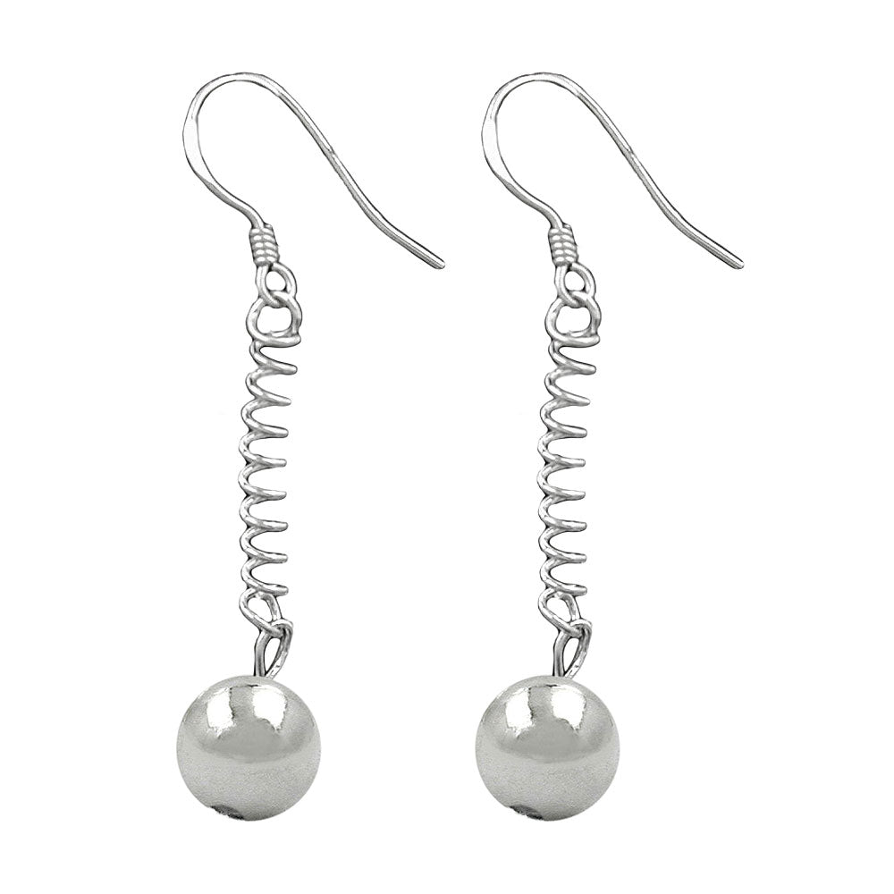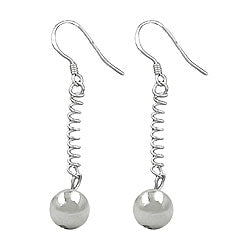 Schaukelndes Etwas in stählern glänzendem Design - dieser ausgefallene, flippige Ohrschmuck passt auch gut zur Steampunk-Kleidung. Die 8mm großen Hohlkugeln sind mit einer 2cm langen starren Feder an den Ohrhaken befestigt. Die Anzahl der Windungen der Schraubenfeder können gering voneinander abweichen. Die Ohrhänger sind anlaufgeschützt rhodiniert und hochglänzend. Ein tolles Schmuckstück für den besonderen Geschmack.