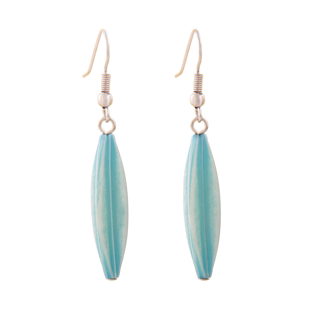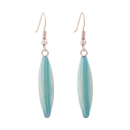 Diese federleichten Modeschmuck-Ohrringe setzen den passenden i-Punkt zu den Farben Ihrer Kleidung. Der 50mm lange Ohrhänger besteht aus einer einzigen 30x9mm großen, hellblauen Rillenolive aus Kunststoff mit ausgewischtem Vintage-Effekt und einem silberfarbenen Ohrhaken aus Messing (Weißbronze). Farbiger Schmuck betont die Farben der Kleidung oder setzt zusätzliche Akzente und rundet Ihren Auftritt glanzvoll ab. Verkauf nur paarweise.