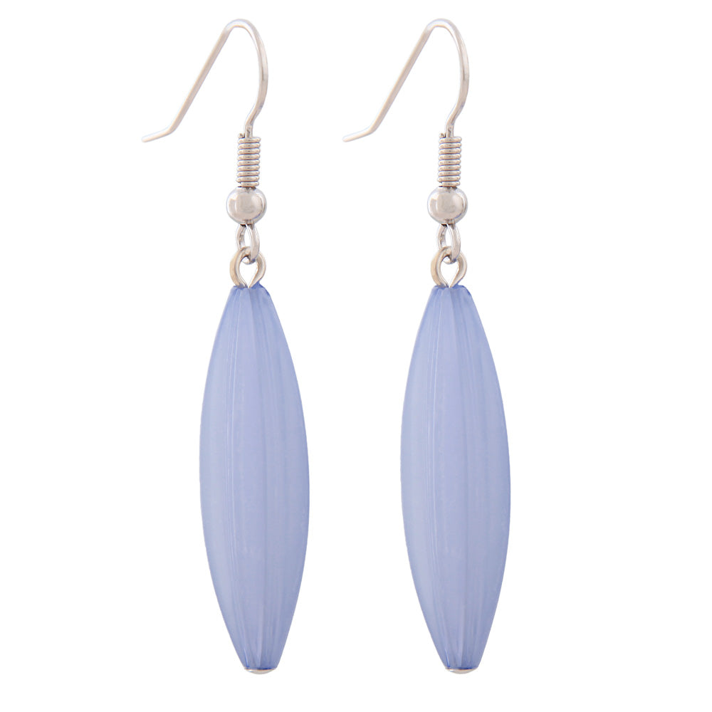 Diese federleichten Modeschmuck-Ohrringe setzen den passenden i-Punkt zu den Farben Ihrer Kleidung. Der 50mm lange Ohrhänger besteht aus einer einzigen 30x9mm großen, hellblau-wachsfarbenen Rillenolive aus Kunststoff und einem silberfarbenen Ohrhaken aus Messing (Weißbronze). Farbiger Schmuck betont die Farben der Kleidung oder setzt zusätzliche Akzente und rundet Ihren Auftritt glanzvoll ab. Verkauf nur paarweise.