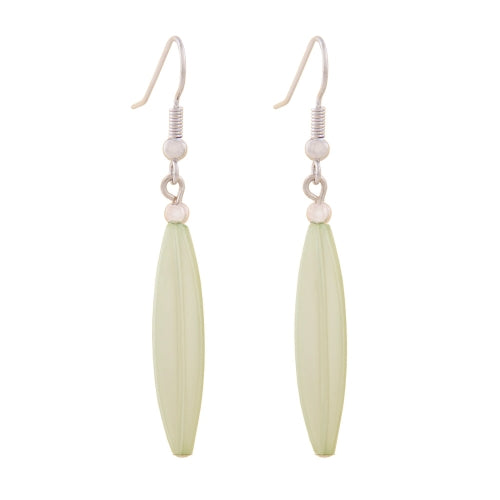 Diese federleichten Modeschmuck-Ohrringe setzen den passenden i-Punkt zu den Farben Ihrer Kleidung. Der 50mm lange Ohrhänger besteht aus einer einzigen 30x9mm großen, hellgrün-wachsfarben glänzenden Rillenolive aus Kunststoff mit einer kleinen silberfarbenen Perle als Topping und einem silberfarbenen Ohrhaken aus Messing (Weißbronze). Farbiger Schmuck betont die Farben der Kleidung oder setzt zusätzliche Akzente und rundet Ihren Auftritt glanzvoll ab. Verkauf nur paarweise.