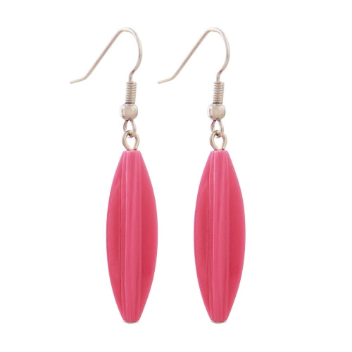 Diese federleichten Modeschmuck-Ohrringe setzen den passenden i-Punkt zu den Farben Ihrer Kleidung. Der 50mm lange Ohrhänger besteht aus einer einzigen 30x9mm großen, satt pinken Rillenolive aus Kunststoff und einem silberfarbenen Ohrhaken aus Messing (Weißbronze). Farbiger Schmuck betont die Farben der Kleidung oder setzt zusätzliche Akzente und rundet Ihren Auftritt glanzvoll ab. Verkauf nur paarweise.