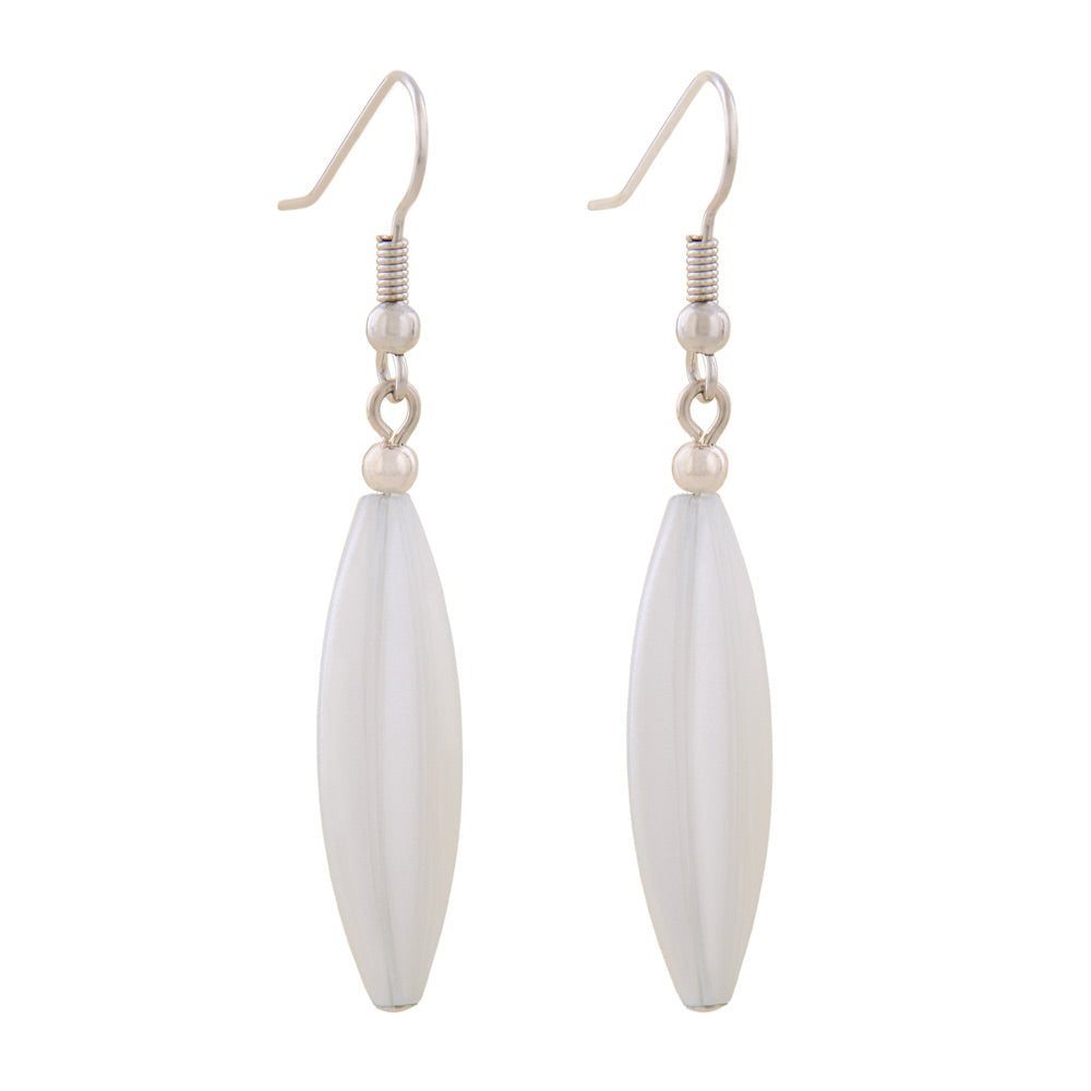 Diese federleichten Modeschmuck-Ohrringe setzen den passenden i-Punkt zu den Farben Ihrer Kleidung. Der 50mm lange Ohrhänger besteht aus einer einzigen 30x9mm großen, wachsweißen Rillenolive aus Kunststoff mit einer kleinen silberfarbenen Perle als Topping und einem silberfarbenen Ohrhaken aus Messing (Weißbronze). Verkauf nur paarweise.