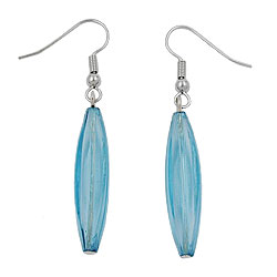 Diese federleichten Modeschmuck-Ohrringe setzen den passenden i-Punkt zu den Farben Ihrer Kleidung. Der 50mm lange Ohrhänger besteht aus einer einzigen 30x9mm großen, türkisblau-transparent glänzenden Rillenolive aus Kunststoff mit einem silberfarbenen Ohrhaken aus Messing (Weißbronze). Farbiger Schmuck betont die Farben der Kleidung oder setzt zusätzliche Akzente und rundet Ihren Auftritt glanzvoll ab. Verkauf nur paarweise.