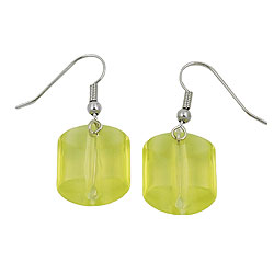 Diese kleinen leichten Modeschmuck-Ohrringe setzen den passenden i-Punkt zu den Farben Ihrer Kleidung. Der Ohrhänger besteht aus einem kleinen Pendel mit einer 20x15mm großen Schrägperle aus Kunststoff, kiwigrün-transparent-glänzend, befestigt an einem silberfarbenen Ohrhaken aus Messing (Weißbronze). Verkauf paarweise.