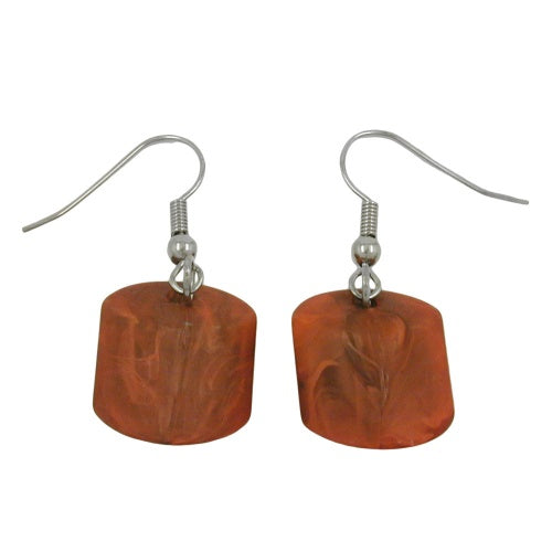 Diese kleinen leichten Modeschmuck-Ohrringe setzen den passenden i-Punkt zu den Farben Ihrer Kleidung. Der Ohrhänger besteht aus einem kleinen Pendel mit einer 20x15mm großen Schrägperle aus Kunststoff, rostbraun-marmoriert-matt, befestigt an einem silberfarbenen Ohrhaken aus Messing (Weißbronze). Verkauf paarweise.
