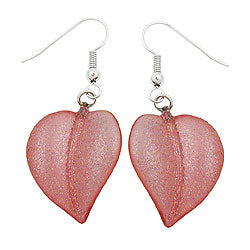 Die kleinen federleichten Modeschmuck-Ohrringe passen wunderbar zur romantisch angehauchten floralen Mode und setzen den passenden i-Punkt zu den Farben Ihrer Kleidung! Der Ohrhänger besteht aus einem Pendel mit einer 20mm großen rosafarbenen, flitterbedeckten Kunststoffperle in Blattform , befestigt an einem silberfarbenen Ohrhaken aus Messing (Weißbronze), Gesamtlänge mit Haken 45mm. Alle Bestandteile des Ohrschmucks wurden in Deutschland produziert und in Handarbeit - made in germany - fertiggestellt. Verkauf paarweise.