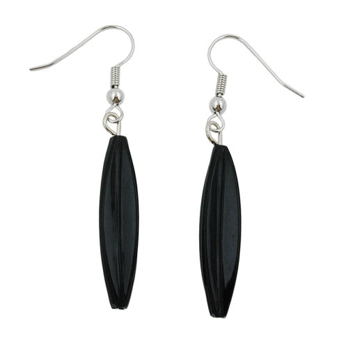 Diese auffallend großen Modeschmuck-Ohrringe passen im neutralen Schwarz zu jeder Farbe Ihrer Kleidung. Der Ohrhänger besteht aus einem 30x9mm großen Pendel, einer schwarz-glänzenden Rillenolive an einem silberfarbenen Ohrhaken aus Messing (Weißbronze). Alle Bestandteile des Ohrschmucks wurden in Deutschland produziert und in Handarbeit - made in germany - fertiggestellt. Verkauf nur paarweise.
