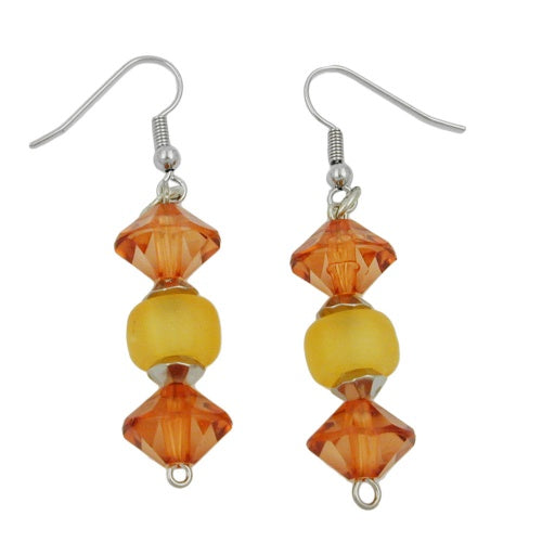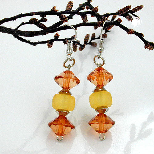 Diese kleinen Modeschmuck-Ohrringe in Gelb und Bernsteinfarben setzen den passenden i-Punkt zu den Farben Ihrer Kleidung. Der Ohrhänger besteht aus einem kleinen Pendel mit facettierten Kunststoffperlen in topas-farbig und gelb-matt, befestigt an einem silberfarbenen Ohrhaken aus Messing (Weißbronze). Alle Bestandteile des Ohrschmucks wurden in Deutschland produziert und in Handarbeit - made in germany - fertiggestellt. Verkauf paarweise.