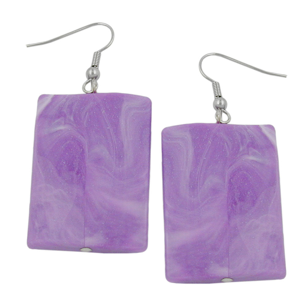 Diese auffallend großen Modeschmuck-Ohrringe setzen den passenden i-Punkt zu den Farben Ihrer Kleidung. Der Ohrhänger besteht aus einem 35x25mm großem Pendel, einer flieder-weiß-marmorierten glänzenden leicht gewellten Kunststoff-Perle, Pillow genannt, und einem silberfarbenen Ohrhaken aus Messing (Weißbronze). Verkauf nur paarweise.