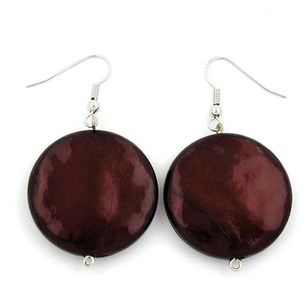 Diese auffallend großen braunen Modeschmuck-Ohrringe setzen den passenden i-Punkt zu den Farben Ihrer Kleidung. Der Ohrhänger besteht aus einem 28mm großen Pendel mit einer kaffeebraun-glänzenden, beidseitig unregelmäßig gewölbten Kunststoff-Perle und einem silberfarbenen Ohrhaken aus Messing (Weißbronze). Verkauf nur paarweise.