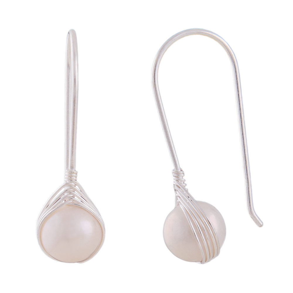 Klassischer Perlenohrschmuck im neuen Style! An diesen ca. 28mm langen, feststehenden Ohrhaken in Sterling Silber 925, gearbeitet in hochwertiger Juwelierqualität, ist in einem kunstfertigen Geflecht aus Silberdraht eine ca. 8mm große weiße Süßwasserzuchtperle eingebunden. Der große Ohrhaken sorgt für einen sicheren Halt und ist leicht einzusetzen. Zuchtperlen werden in Süßwasserseen und Flüssen gezüchtet und unterscheiden sich nur durch den fehlenden Kern von echten Perlen. Sie bleiben trotz Züchtung Naturprodukte und können in Farbe, Form und Oberflächenbeschaffenheit leicht voneinander abweichen. Die Eigenschaften von Zuchtperlen und Naturperlen, die chemische Zusammensetzung, die Härte und die optischen Eigenschaften sind gleich. Perlen sind als Symbol von Reinheit und Schönheit ein schöner Brautschmuck, der auch zu anderen festlichen Anlässen und im Alltag getragen werden kann.