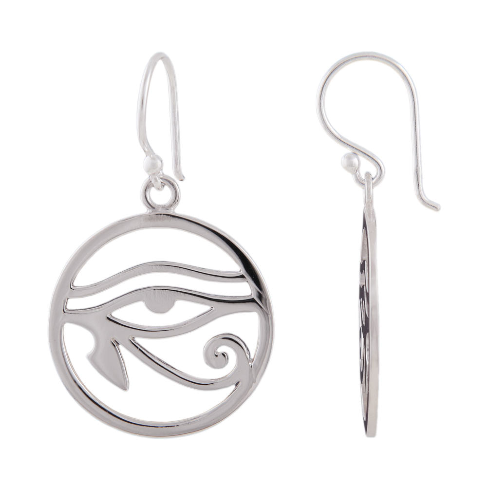Wunderschöne, 34x20mm große Motivschmuck Ohrringe in Sterling Silber 925, gearbeitet in hochwertiger Juwelierqualität. Die ägyptische Hieroglyphe mit magischer Bedeutung - das geheilte Auge des Lichtgottes Horus - ist mit 20mm Kreisdurchmesser ein echter Blickfang. Der filigrane Ohrhänger baumelt an einem einfachen Ohrhaken. Das Horusauge - Augen-Amulett dient als Schutzsymbol - Talisman, soll vor dem bösen Blick bewahren und Licht in die Dunkelheit (Unterwelt) bringen. Für alle Menschen, die sich der ägyptischen Mythologie oder einfach nur dem Sehnsuchtsziel Reiseland Ägypten verbunden fühlen.