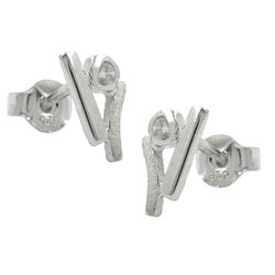 Moderner, schwungvoller Zirkonia-Ohrstecker in Sterling Silber 925, gearbeitet in hochwertiger Juwelierqualität. Der 10x5,5mm große, V-förmige Ohrstecker hält einen kleinen runden weißen funkelnden Zirkonia in der Mitte, der gebogene Steg ist matt gebürstet und der gerade glänzend poliert. Die schöne rechts-links-Variante schmeichelt der Gesichtsform. Ein kleines aber feines Schmuckstück für viele Gelegenheiten!
