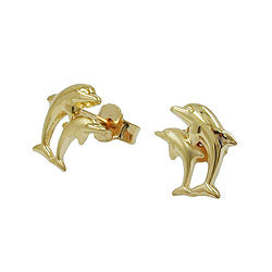 Dieser wunderschöne Delfin-Ohrring ist nicht nur Schmuck für kleine Mädchen! Der 10x7mm kleine Ohrstecker mit dem Delfin-Pärchen aus 375er Gold (9 Karat) ist in hochwertiger Juwelierqualität gefertigt. Wie im richtigen Leben in der Delfinschule springen auch diese zwei Delfine zusammen und synchron. Entgegen der Abbildung (!) ist der größere mattiert und der kleinere glänzend poliert, die Rückseite des Ohrsteckers ist hohl. Das Tiermotiv springender Delfin kann auch als Ausdruck der eigenen Lebenseinstellung getragen werden. Der Delfin verkörpert Intelligenz, Kraft, Ausdauer, Geschicklichkeit, Geselligkeit und Lebensfreude und gilt als Freund des Menschen. Dieser Delfinschmuck ist ein wertvolles Geschenk zum Geburtstag, Schuleinführung oder einfach mal als kleine Überraschung zwischendurch!