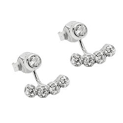 Raffinierter Ohrstecker aus Sterling Silber 925 mit Zirkonias, bestehend aus 2 Teilen, gearbeitet in hochwertiger Juwelierqualität. Der 3,5mm große Zirkonia in Zargenfassung ist auch einzeln tragbar, der Bogen mit den 4 kleinen weißen funkelnden Zirkonias wird hinter dem Ohrloch auf den Steckerstift geschoben und schaut unterhalb des Ohrläppchens hervor.