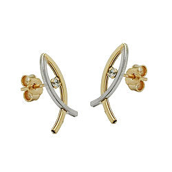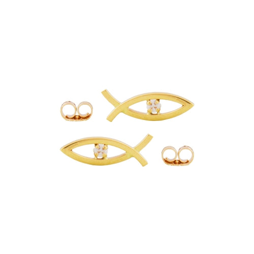 Wunderschöner, religiöser Ohrstecker aus 375er Gelbgold (9 Karat) mit Zirkonia, gearbeitet in hochwertiger Juwelierqualität. In der Mitte funkelt ein weißer Zirkonia in Krappenfassung. Das Ichthys-Zeichen, auch Jesus-Fisch genannt, wird als Bekenntnis zum christlichen Glauben getragen. In den Anfängen des Christentums war das Fisch-Symbol ein geheimes Zeichen für christlich Gläubige. Diese Fisch-Ohrringe mit hochglänzender Oberfläche sind ein besonders schönes Geschenk zur Konfirmation.