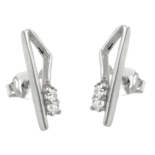 Moderner, schwungvoller Zirkonia-Ohrstecker in Sterling Silber 925, gearbeitet in hochwertiger Juwelierqualität. Den 17x5mm großen Ohrstecker mit der spitzen Ecke verzieren zwei kleine funkelnde weiße Zirkonias am Ende der glänzenden Strebe. Die rechts-links-Variante schmeichelt der Gesichtsform. Ein schönes Schmuckstück für viele Gelegenheiten!