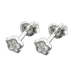 Oh wie romantisch - 5mm kleiner zarter Blumen-Ohrstecker in Sterling Silber 925 mit stilisierter Blüte, in dessen Mitte ein kleiner weißer Zirkonia funkelt, klein aber fein. Die hochwertige Juwelierqualität sorgt für langanhaltende Freude an diesem eleganten Schmuckstück. Ein schönes Geschenk zum Kindergeburtstag, Schuleinführung oder einfach mal zwischendurch! Durch die neutrale weiße Farbe und das florale Motiv ist dieser Ohrstecker nicht nur als Kinderschmuck geeignet.