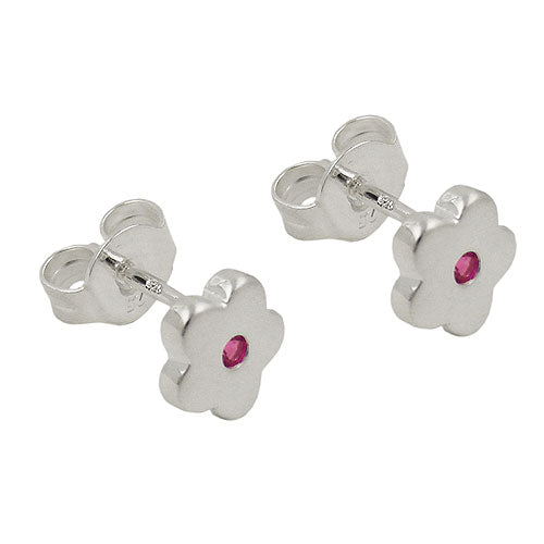 ...und eine kleine Blume muss man auch haben! Niedlicher 6mm kleiner Ohrstecker Blume in Sterling Silber 925 mit stilisierten seidenmatten Blütenblätter und einem klitzekleinen funkelnden pink farbenen synthetischen Rubin in der Blütenmitte, gearbeitet in hochwertiger Juwelierqualität. Als wunderschöner Schmuck für alle romantisch Angehauchten ist das elegante Blumenmotiv das passende Geschenk - nicht nur als Kinderschmuckmotiv beliebt!