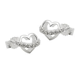 Herz ist Trumpf! Wunderschöne kleine Herz Ohrstecker aus Sterling Silber 925, gearbeitet in hochwertiger Juwelierqualität. Den Blickfang bildet eine Linie aus kleinen weißen Zirkonias, die mittels micro pavé (micro settings) gefasst wurden. Wie ein glitzernder Ehrenkranz liegen diese stolz über den 6x9mm großen Herz Ohrringen. Ein wunderschönes Geschenk für Verliebte und das perfekte Geschenk zum Valentinstag oder zum Hochzeitstag!