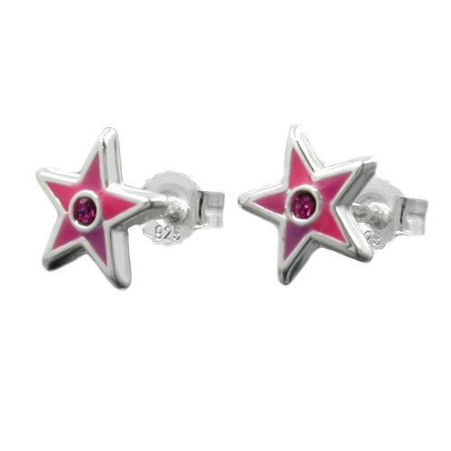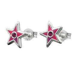 Fünfzackiger Stern in pink - nicht nur für kleine Mädchen! Farbige Kinderohrringe Ohrstecker 8x8mm pink lackiert aus Sterling Silber 925 mit einem kleinen rosa Glasstein als i-Tüpfelchen in der Mitte. Die Rückseite ist hohl. Ein Stern dringt mit seinem Licht durch jede Dunkelheit. Ein tolles Geschenk für kleine Mädchen zum Geburtstag, Schuleinführung oder einfach mal als kleine Überraschung zwischendurch - nicht nur als Kinderschmuck geeignet!