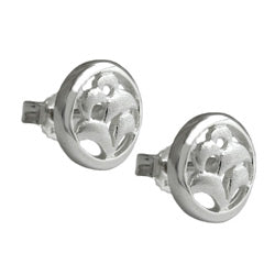 Romantisch verspielter, 9mm großer Ohrstecker in Sterling Silber 925, gearbeitet in bester Juwelierqualität. In dem runden, glänzenden Ring befindet sich ein florales Muster, das an einen Baum oder Strauch erinnert. Das Durchbruchmuster wurde zusätzlich mattiert. Ein wunderschönes Schmuckstück für einen besonderen Menschen.
