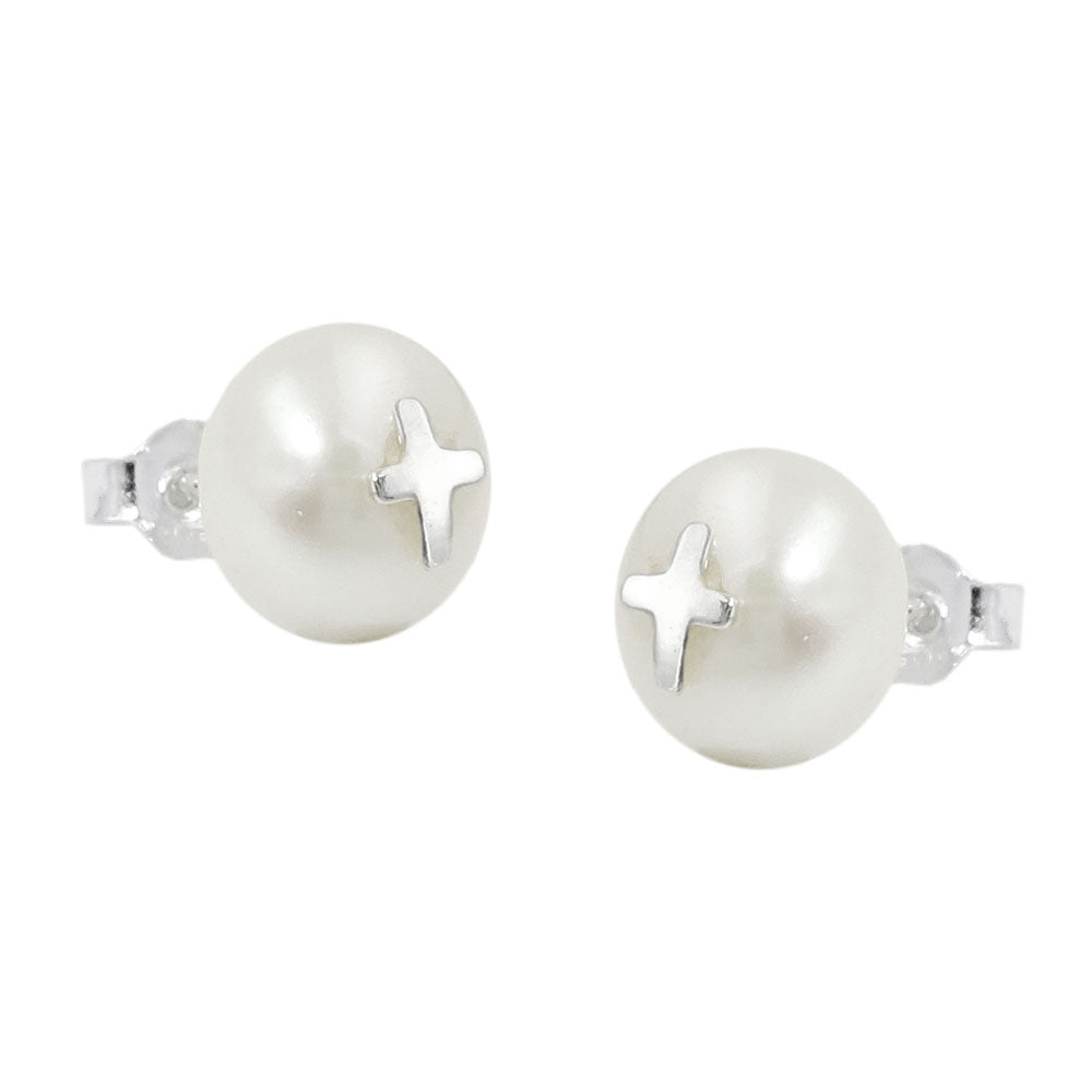 Zwei Motive werden mit diesem Kreuzohrstecker auf Süßwasserzuchtperle ca. 9mm, leicht unrund, klassisch veredelt. Die schlichte Perle gilt als Symbol von Reinheit und Schönheit. Das Kreuz ist Bekenntnis zum christlichen Glauben. Dieser ausgefallene Ohrstecker in Silber 925 mit Kreuzmotiv kann als wunderschöner Brautschmuck, aber auch zu anderen festlichen Anlässen und im Alltag getragen werden. Zuchtperlen werden in Süßwasserseen und Flüssen gezüchtet und unterscheiden sich nur durch den fehlenden Kern. Zuchtperlen sind trotz Züchtung Naturprodukte und können in Farbe und Form leicht voneinander abweichen. Die Eigenschaften von Zuchtperlen und Naturperlen, die chemische Zusammensetzung, die Härte und die optischen Eigenschaften sind gleich. Ein Geschenk der Natur für die Schönheit der Natur.