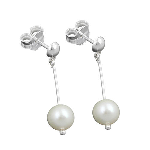 Eleganter Ohrstecker in Sterling Silber 925 mit einer ca. 6mm großen Süßwasserzuchtperle, die sich auf dem Silberstift vertikal frei bewegen kann, als Pendel. Klassisch puristischer Perlenschmuck ohne weiteren Schnickschnack. Wunderschöner Brautschmuck, der auch im Alltag getragen werden kann. Die hochwertige Juwelierqualität sorgt für langanhaltende Freude an diesem eleganten Schmuckstück.