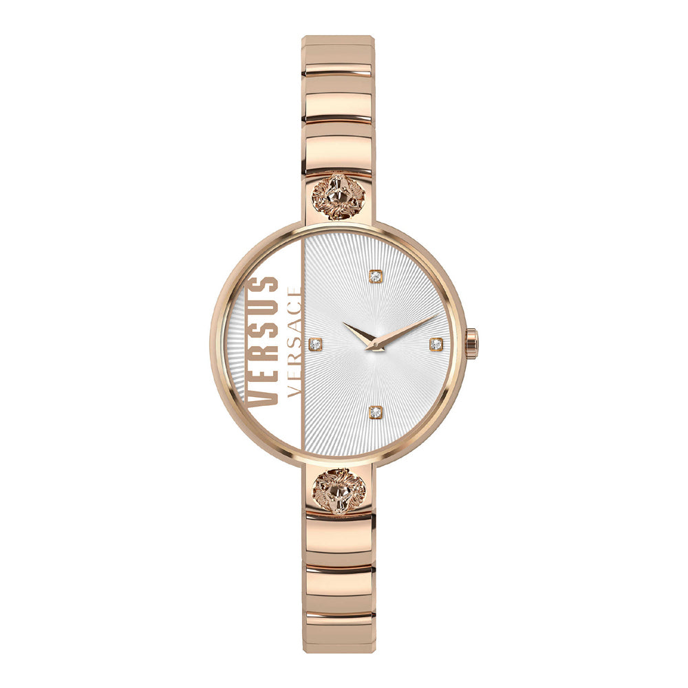 - Edelstahlgehäuse, rosegoldfarbene Beschichtung, poliert