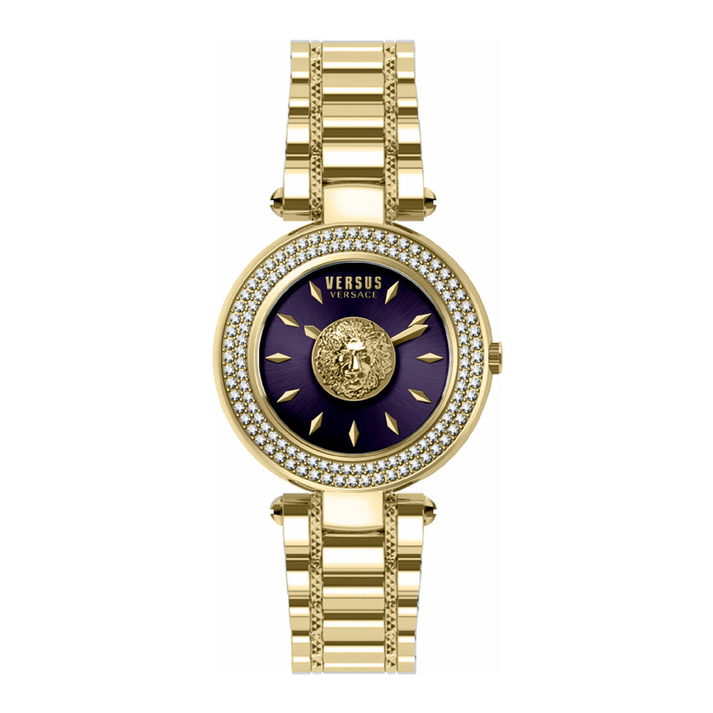 - Edelstahlgehäuse, goldfarbene Beschichtung, poliert, mit Steinen besetzt